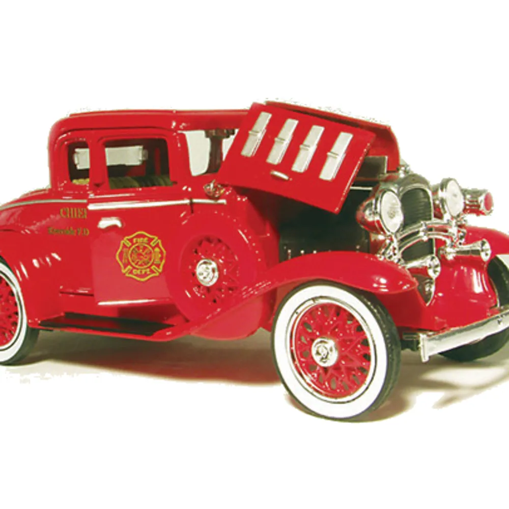 Accompanying it is the 1932 Confederate Fire Chief Truck model, also in 1:32 scale, showcasing opening doors and hood, a baked enamel finish, an opening rumble seat, dual running boards, and official Chevrolet logos.