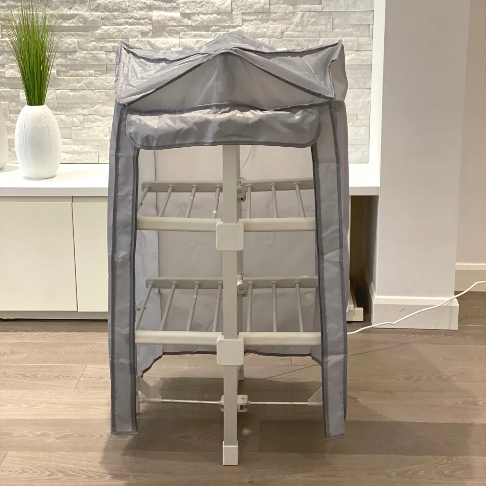 This energy-efficient airer costs approximately 5.5p per hour to run, offering an economical alternative to tumble dryers. The gentle, consistent warmth ensures your clothes dry faster, while the free fitted cover enhances heat retention, cutting drying time significantly and protecting your garments from dust.