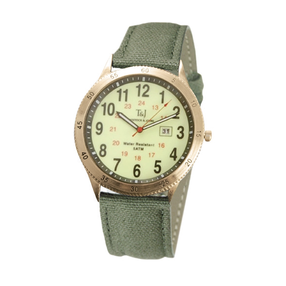 • Military Night-Vision Dial with Large, Easy-to-Read Numbers and Date