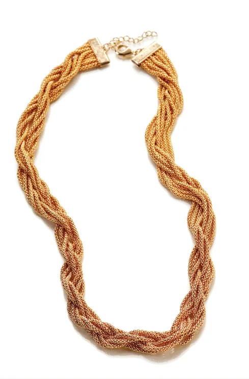 Our Asombro 8-Strand Necklace is a treasure that doesnt play hard to get. This 18″ stunner is a classic golden beauty with a twist. The eight gold-finished strands combine for a look of weighty affluence. But the airy popcorn chains make this accessory the ultimate lightweight luxury. All of the chains meet at a pair of goldfinished, decorative end caps that connect with a lobster clasp and 2″extender.