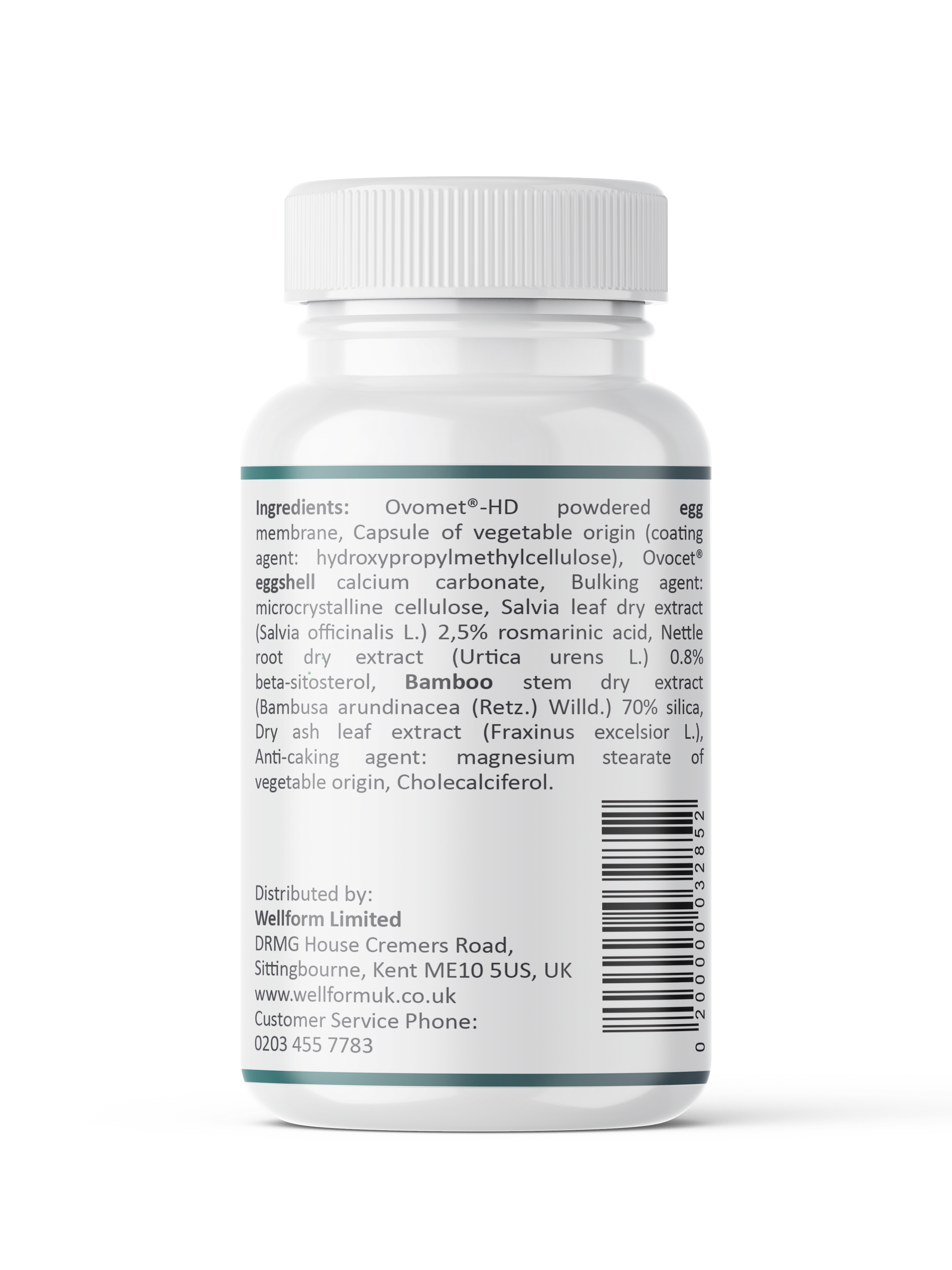 • Principal Ingredients: Bamboo extract, sage extract, nettle extract, eggshell membrane proteins, Vitamin D