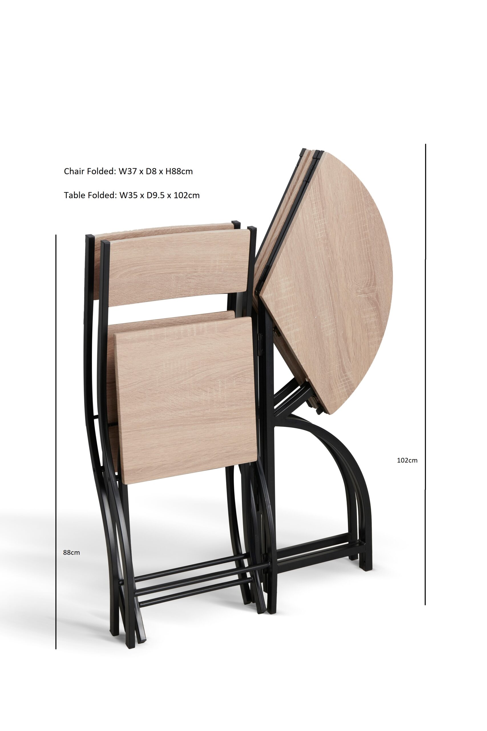 • Table dimensions: Open – 70cm x 70cm x 74.5cm; Closed – 35cm x 9.5cm x 102cm