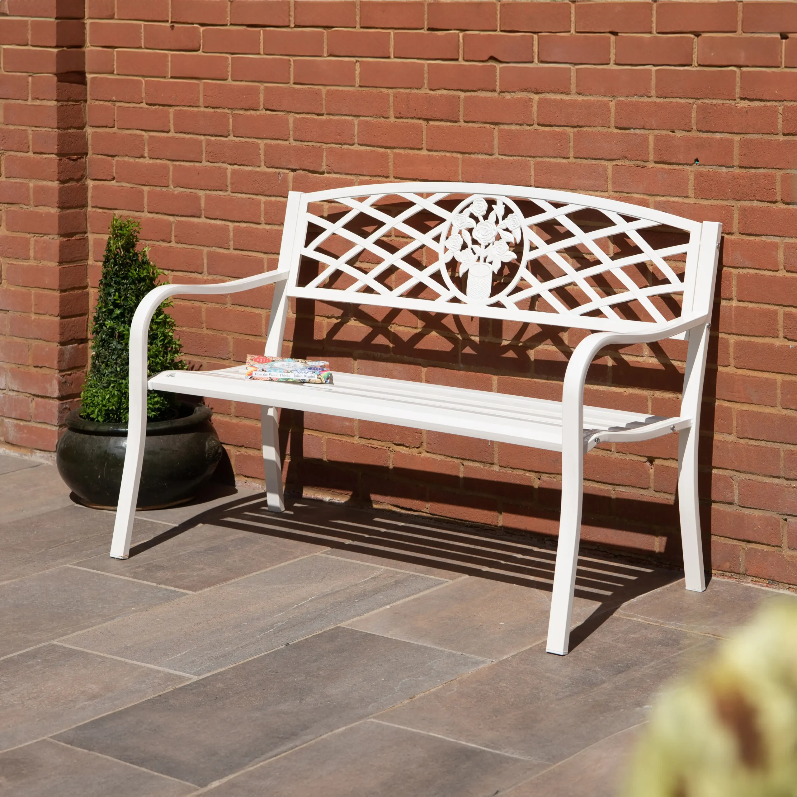 Measuring W127 x D58 x H87cm overall, with a generously proportioned seat of W121 x D43 x Height from floor 41cm, this bench offers ample space for you and a loved one to relax and enjoy the beauty of your surroundings. The durable powder-coated finish ensures long-lasting protection against the elements, while the easy home assembly makes setup a breeze.