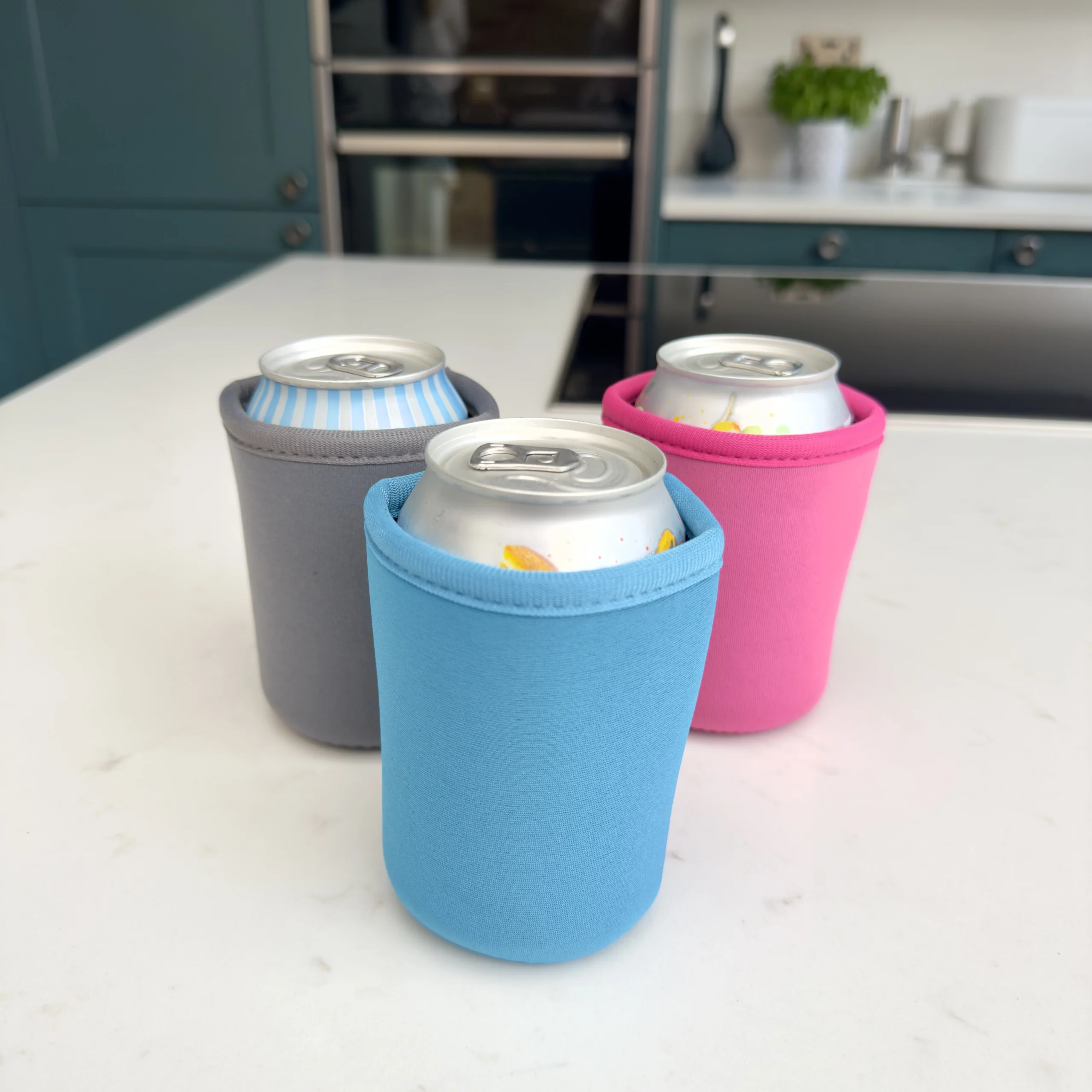 Crafted from high-quality neoprene, the same material used in wetsuits, each sleeve provides effective insulation to maintain your drink’s temperature for longer. The soft, flexible material stretches to fit snugly around most standard 330ml – 440ml cans and small bottles, ensuring a secure grip and an easy, comfortable hold.