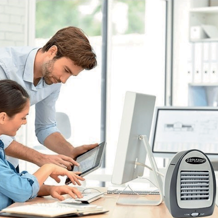 The Coolform® Mini Aircon is your go-to solution for fast, effective personal cooling wherever you need it. Compact and lightweight, it’s ideal for bedrooms, kitchens, offices, or even caravans—simply fill the 400ml tank with cool water, switch it on, and enjoy the instant difference.