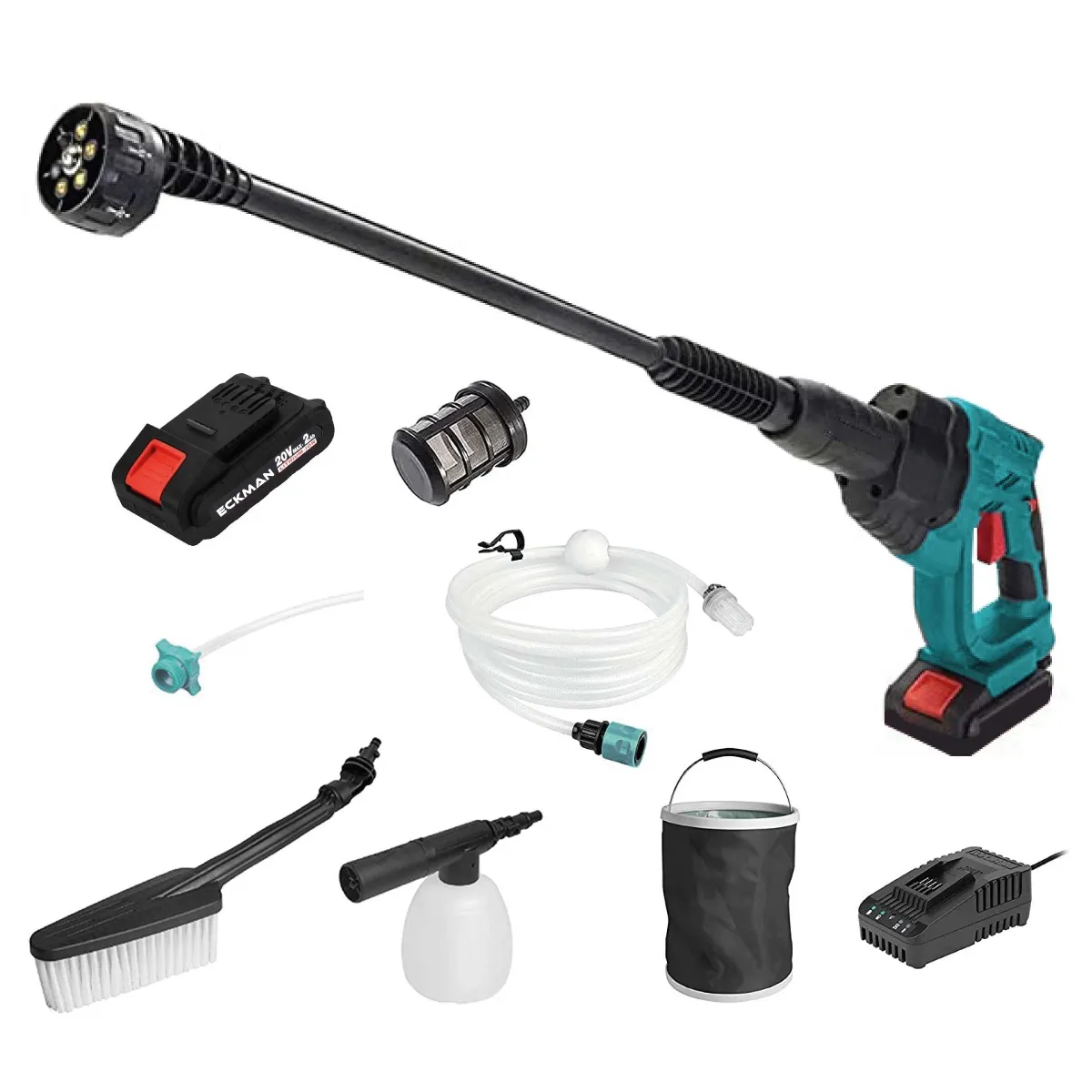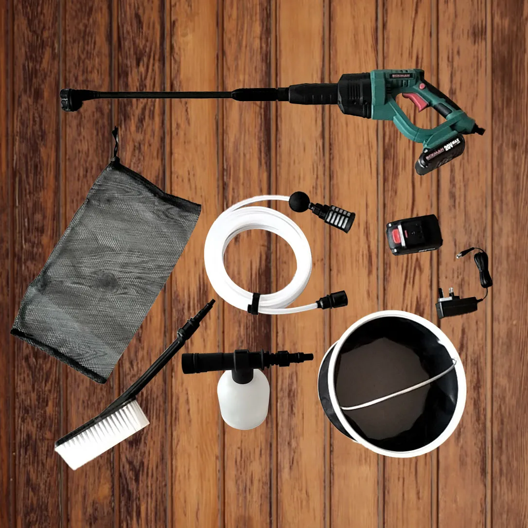 Experience a new realm of cleaning with the Eckman Cordless High-Pressure Washer. Engineered for mobility, this device transforms the way you clean, giving you the power to wash with 10 times the pressure of a regular hose. Its light and compact form factor make it your perfect companion for on-the-go cleaning tasks.