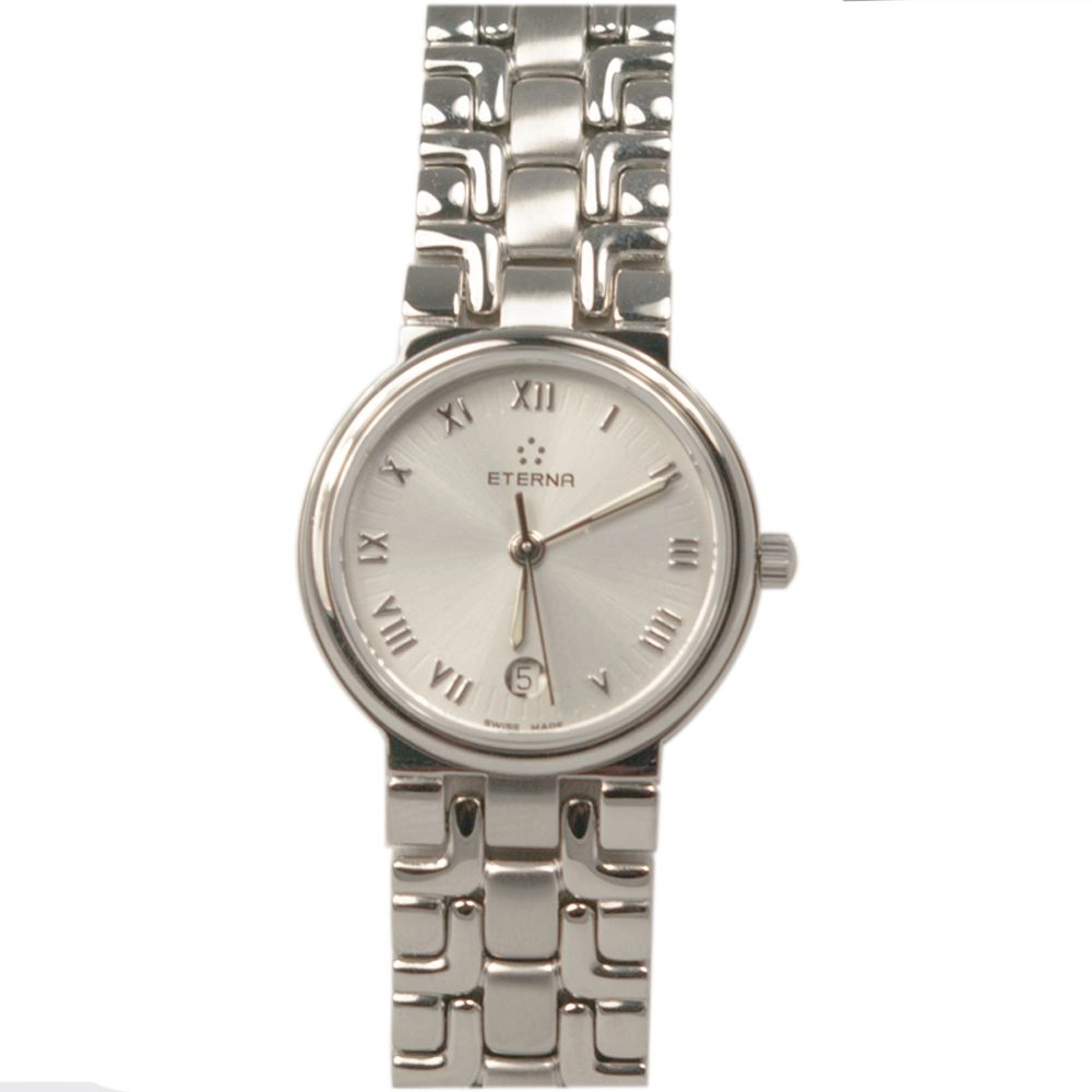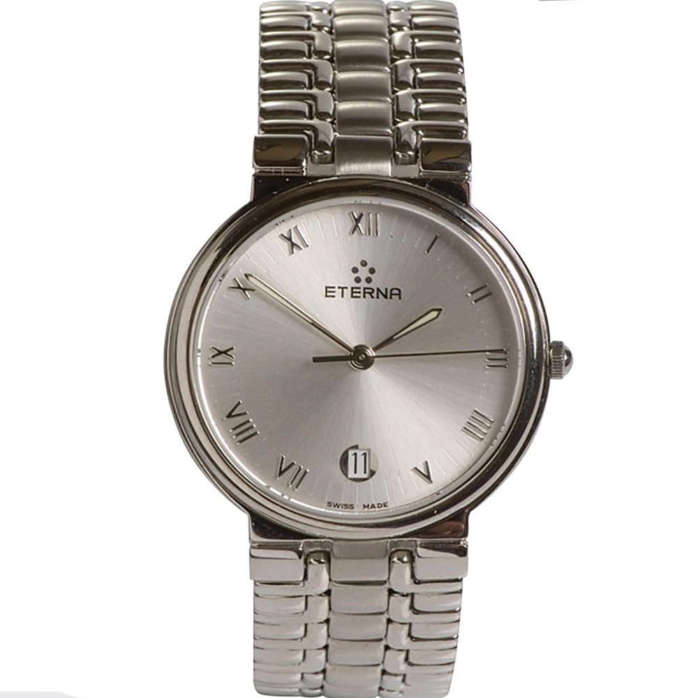 Eterna watches boast finely crafted stainless steel cases and bracelets, complemented by sapphire crystal faces that ensure durability and clarity. The silver dials and date displays add a touch of elegance to the timepieces. Behind the facade lies an exceptionally accurate and reliable quartz electronic movement that keeps time with precision. Eterna watches are designed to be not only luxurious but also practical, featuring 30 meters of water resistance for everyday wear.