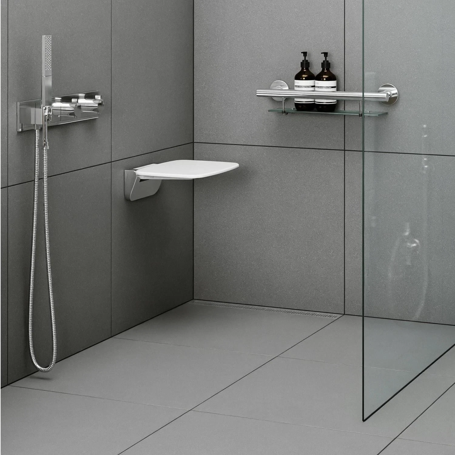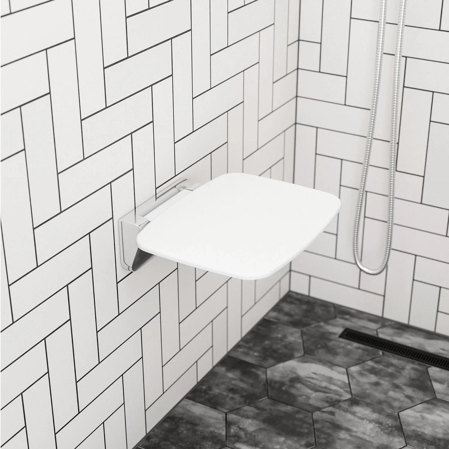 A foldaway bathroom seat that adds safety, comfort, and convenience for everyday use