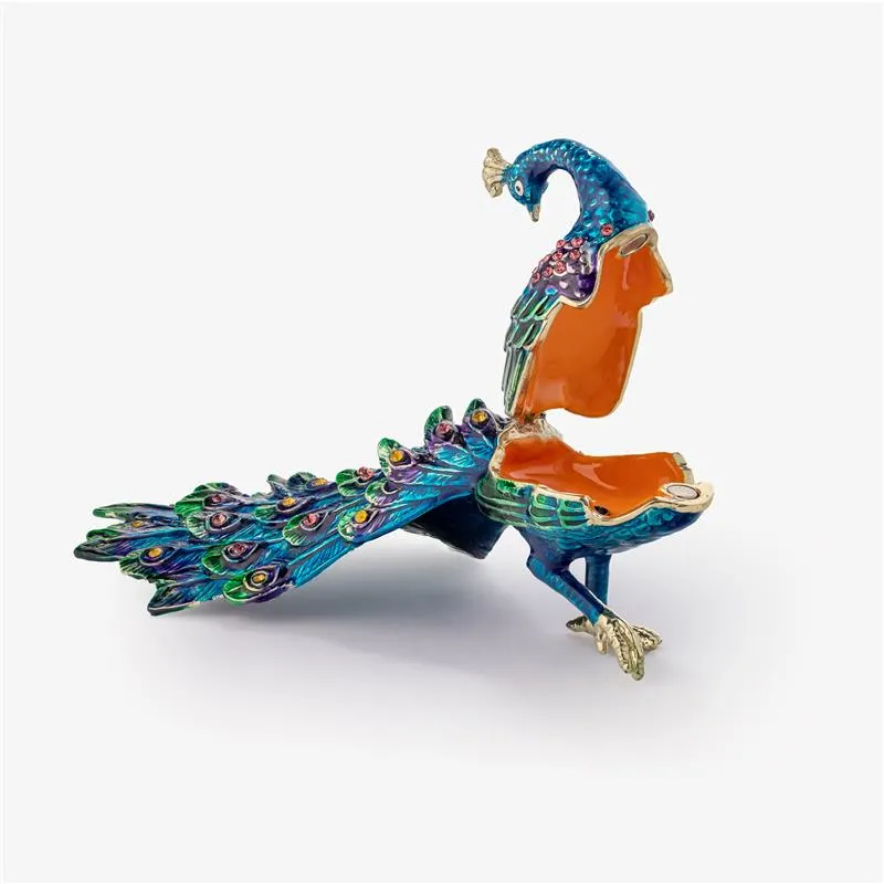 Perhaps you or someone you love can attest to the thrill of glimpsing a kingfisher swoop down for his catch, watching blue jays jostle at the backyard feeder, or hearing a crimson cardinal suddenly burst into song. The universal joy birds inspire is why we’re delighted to unveil our Friends of a Feather Peacock Trinket Box, a bejeweled tribute to those jewels of the animal kingdom. Handmade in durable pewter and finished with sparkling enamel and Austrian crystals, this exquisitely rendered bird hinges open to safeguard your treasures.