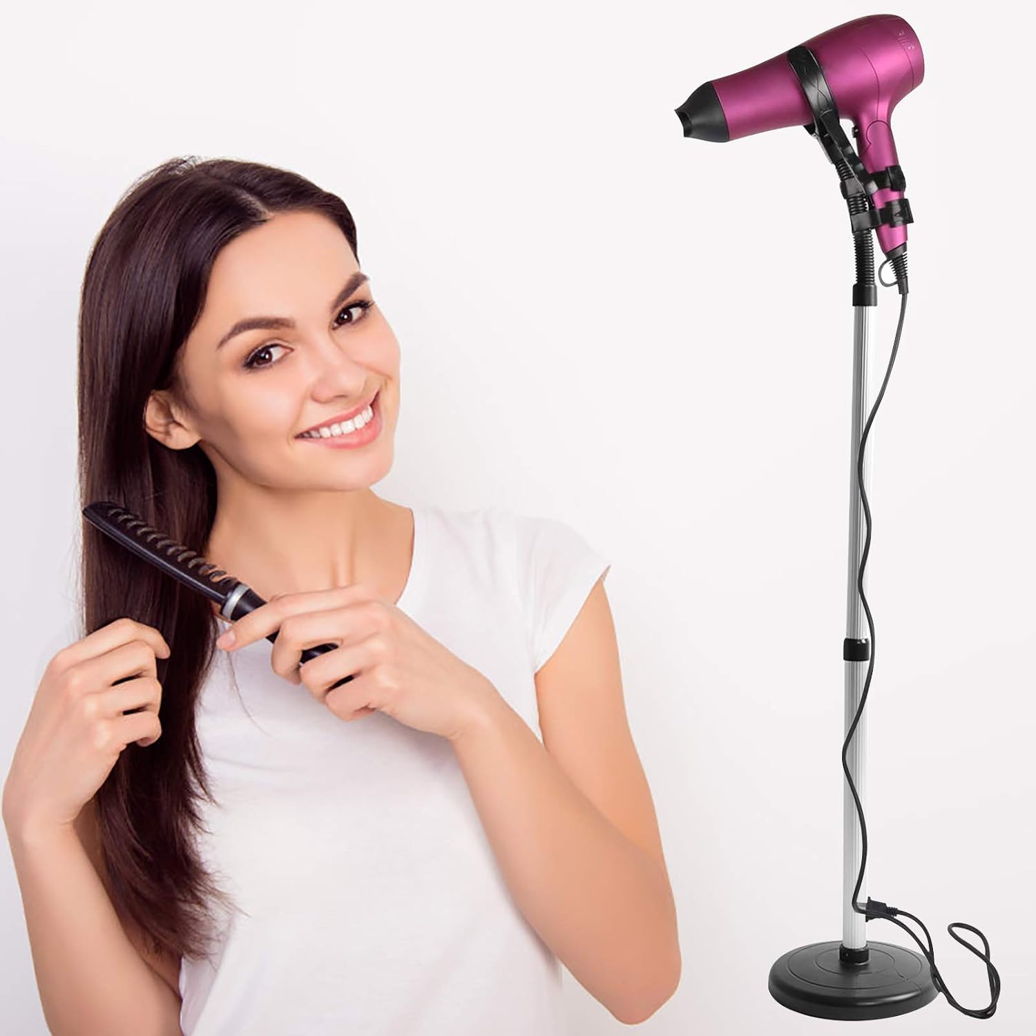 Experience the Convenience of Effortless Hair Styling with Our Robust, Adjustable Hair Dryer Holder