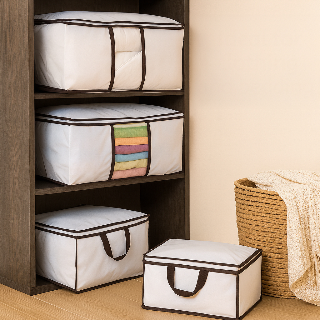 Storage, especially for items like clothing and bedding, often presents a conundrum. We want easy access, visibility, and protection from common storage threats like damp or pests. Our Jumbo Storage Bags tick all these boxes. Designed with a convenient three-sided zip, accessing your items is a breeze. No more rummaging blindly; the transparent front panels give you an immediate view of the contents. Crafted from Neotex, these bags aren’t just spacious, they’re protective. They shield your belongings from threats like moths, damp, mildew, and dust, ensuring prolonged quality. Plus, the dimensions make them ample enough for your storage needs. And the cherry on top? An exclusive offer that includes two breathable storage chests, absolutely free.