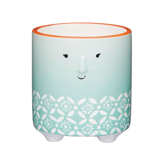 Featuring a cheerful face on a pale green background, complemented by a white-detail floral base and a terracotta rim, these pots are a playful addition to any décor. They’re perfect for housing lucky bamboo, fragrant peppermint, or a cute cactus, allowing you to personalise your space with a splash of colour and a dash of fun.