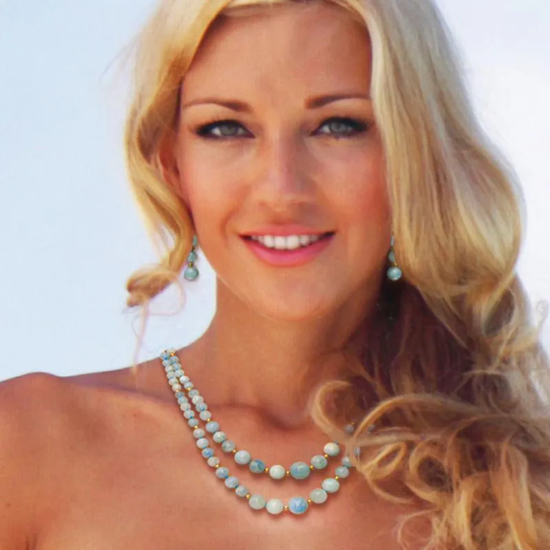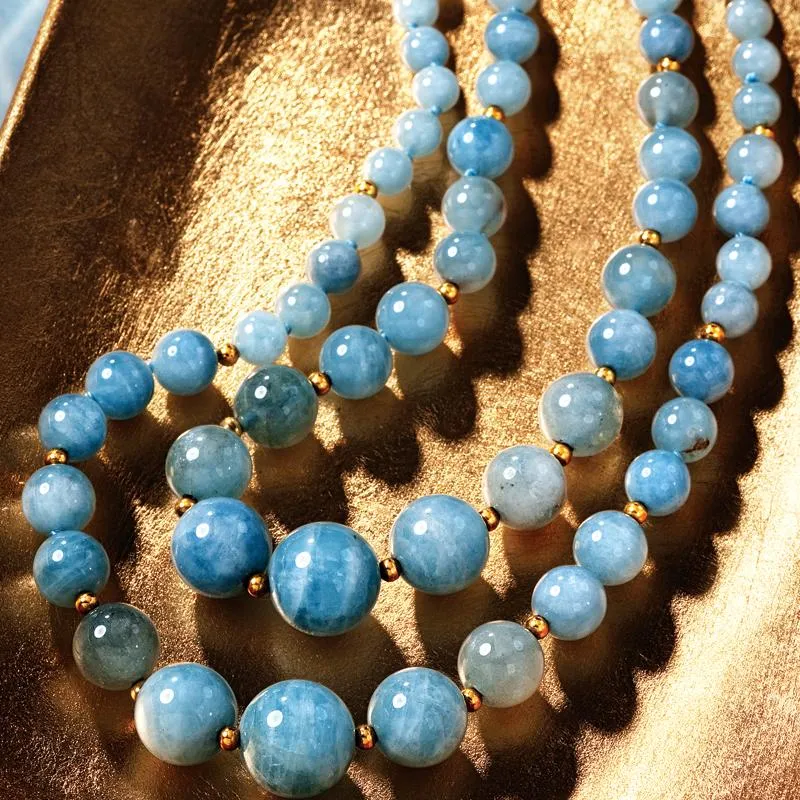 A legend among luxury jewelers. Named for the Latin words for water of the sea, aquamarine shines with all the colors of the ocean. Each bead is like a droplet of the sea frozen in space and time. Walk into the most exclusive retail jewelers and you’ll find aquamarine in a place of honor. Fifth Avenue thinks nothing of offering a strand of aquamarine pebbles for nearly $12,000. But with a color this captivating, you deserve more than a dollop. That’s why we collected the bluest stones from three continents, polished them to perfection and arranged them in this double-stranded, 300-carat masterpiece.
