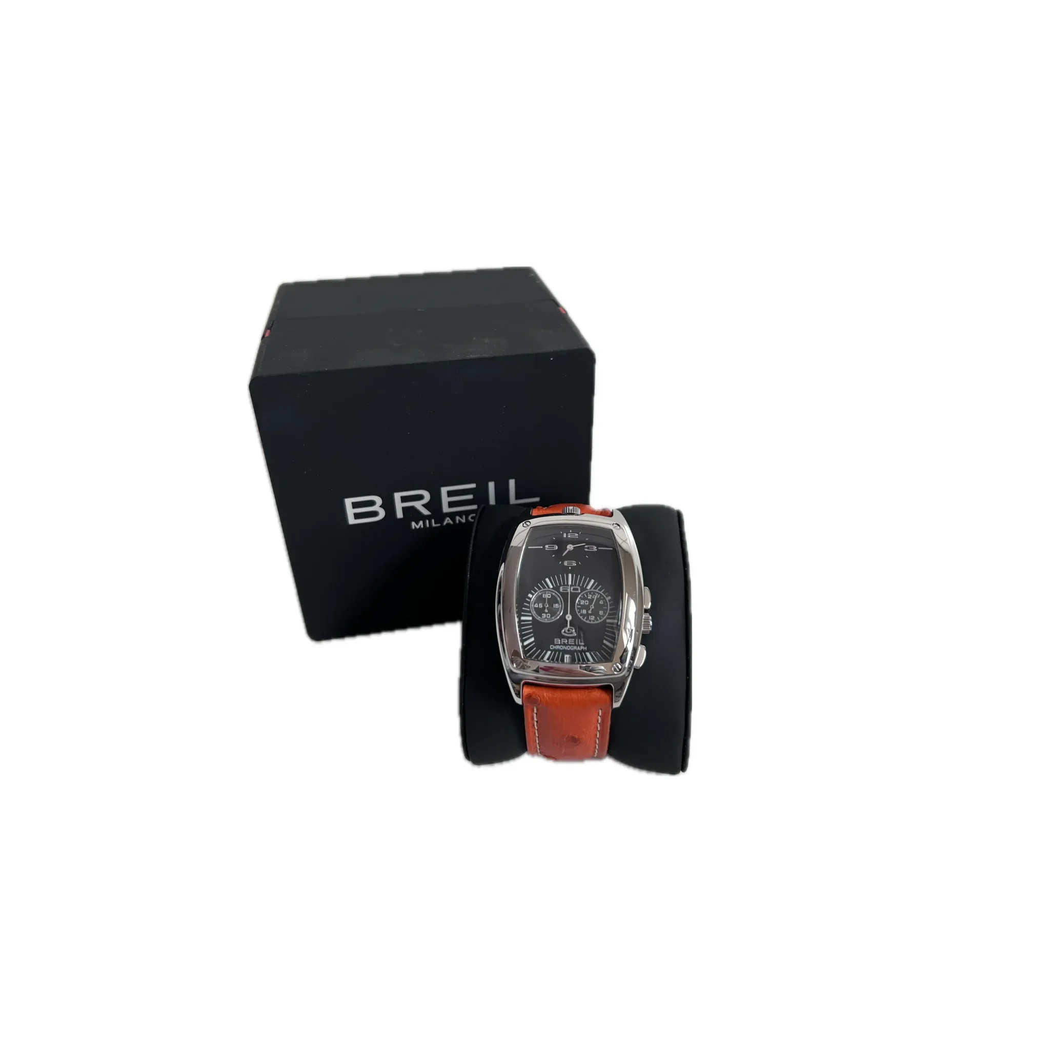 The Men’s Breil Frame S Ch/Dbl Watch stands as a testament to the artistry of contemporary design and enduring style. Its rectangular black face, meticulously crafted for a clean and sophisticated look, becomes a statement of precision and modernity. The vibrant 2cm orange leather band adds a touch of boldness to your wrist, making this watch a unique and eye-catching accessory.