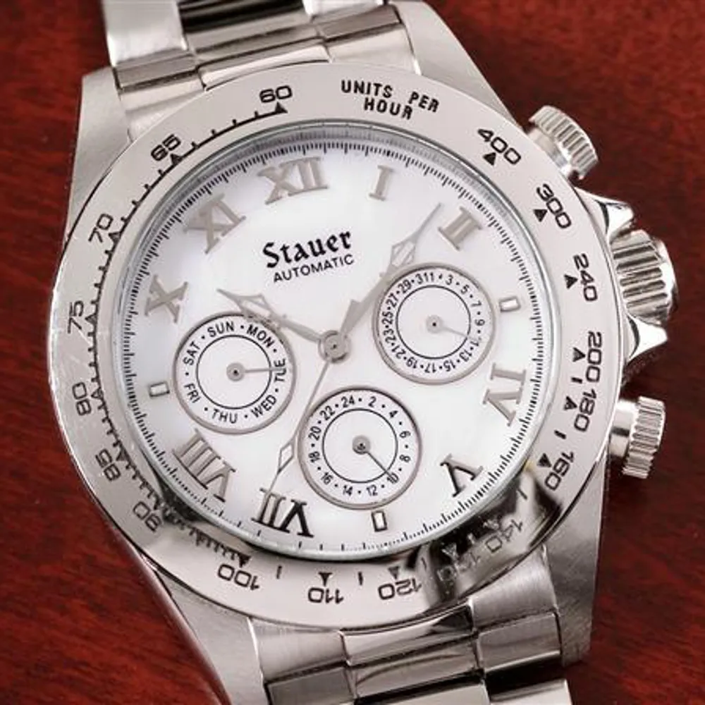 Venturing beyond the picturesque Swiss Alps, we sought a location that merged the ethos of Swiss precision with cost-effective production. Employing Swiss machinery, Swiss-trained engineers, and precision-driven Swiss calibrators, our vision crystallized in the form of the Stauer Monaco with a Chrome Bracelet.
