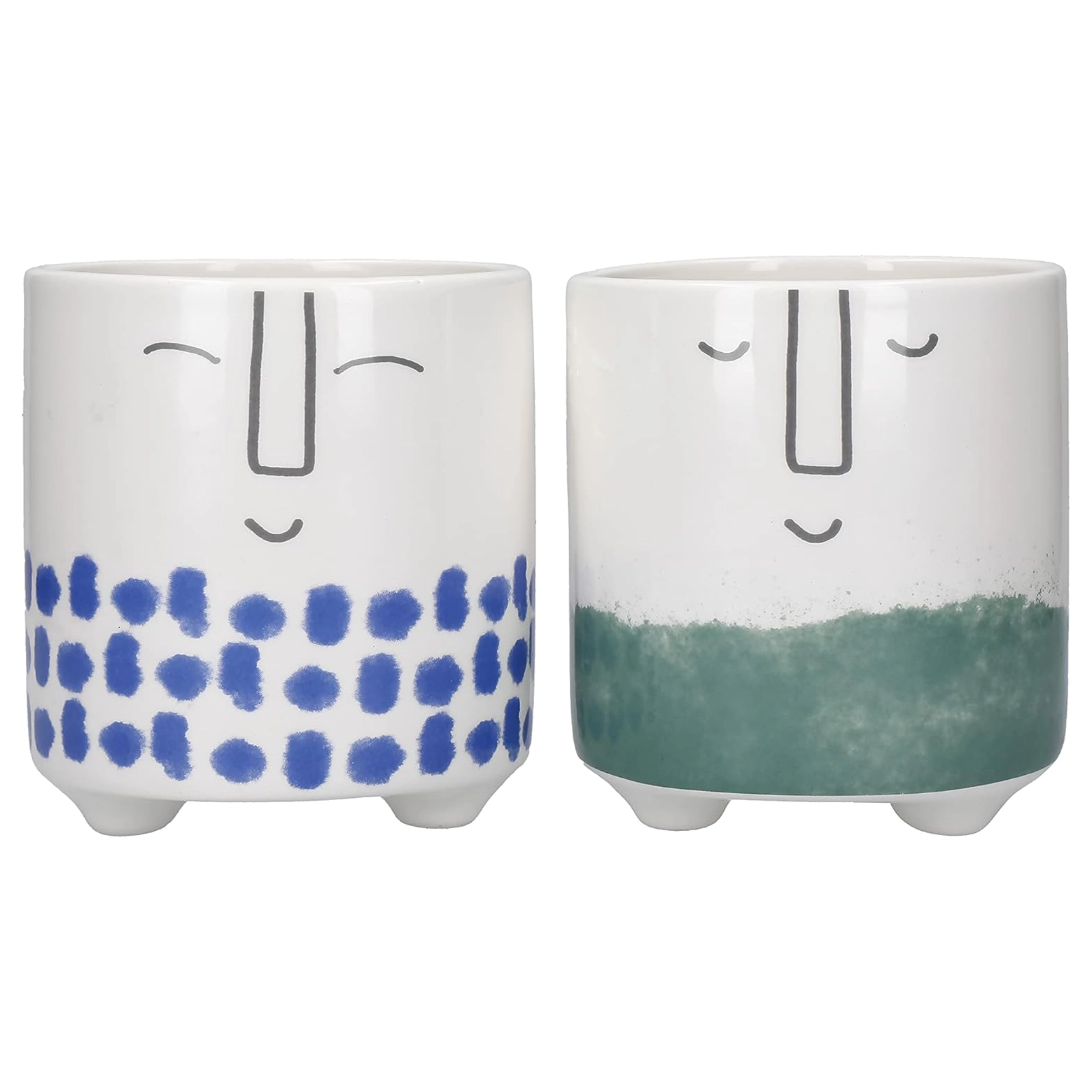 Set of 2 Ceramic Plant Pots with Happy Faces