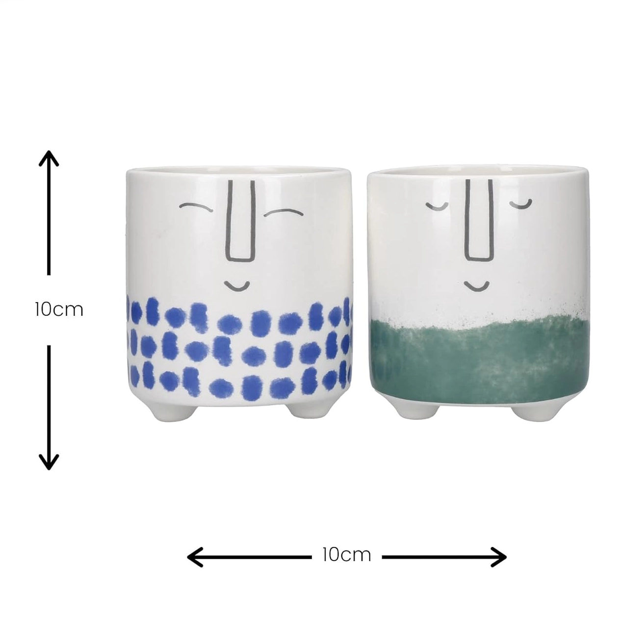 Brighten up your day and space with the KitchenCraft Ceramic Plant Pot Set. This set includes two charming small planters, each adorned with cheerful smiley face designs and playful colour touches. Perfect for small cacti, succulents, or flowering houseplants, these pots add a fun and happy vibe to any desk, shelf, or window sill.