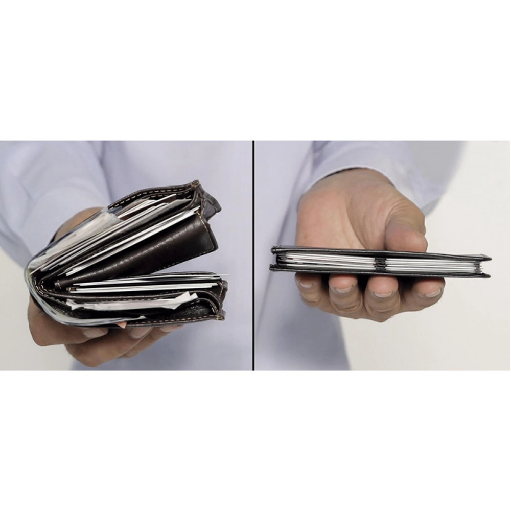 This ultra-compact wallet is a game-changer for anyone tired of bulky, traditional wallets hogging space. Its surprising capacity allows you to neatly organize bank cards, loyalty cards, banknotes, and more. Crafted with precision, it prevents damage to card magnetic strips, ensuring your cards stay in top condition.