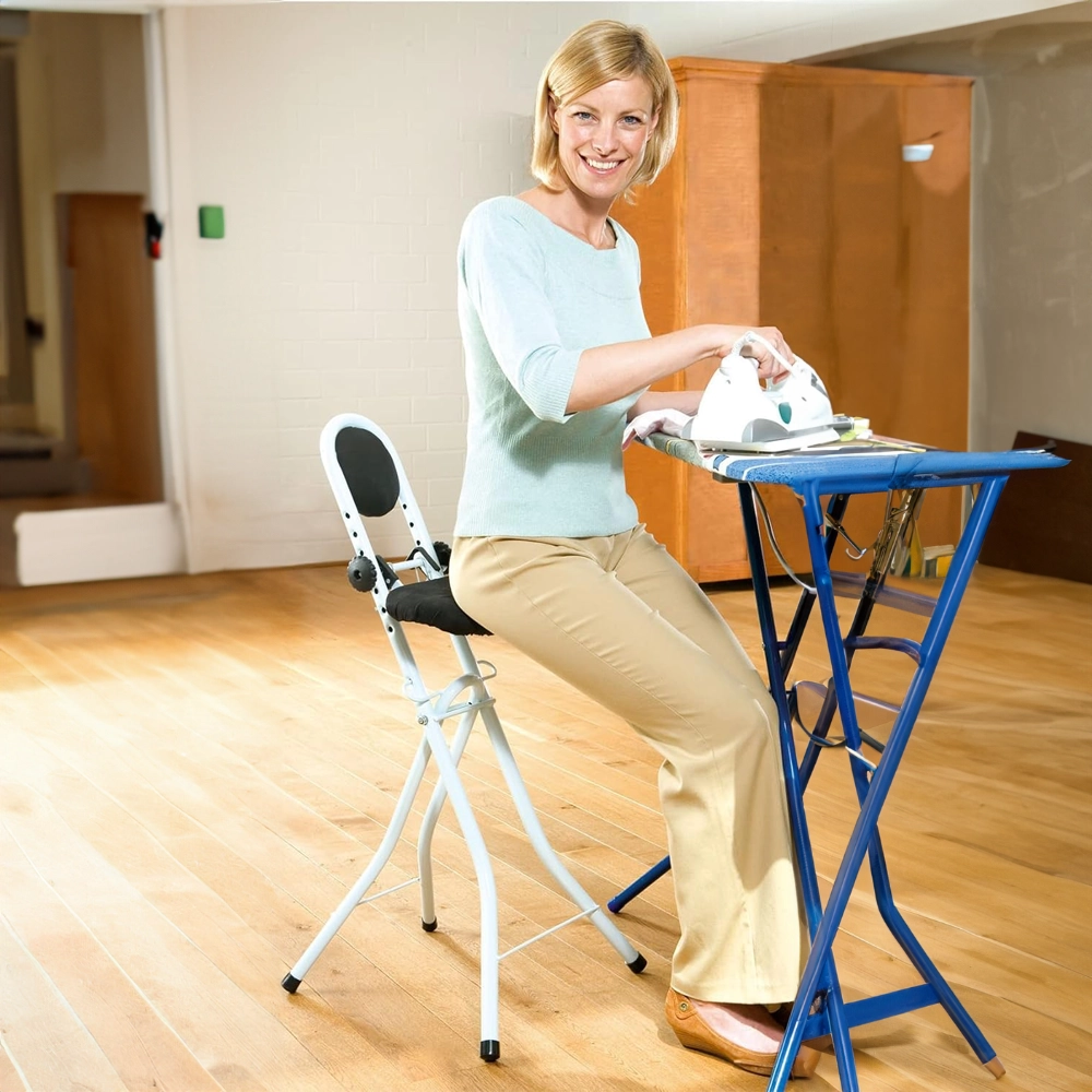 Constructed from sturdy tubular steel, this seat features a reliable locking device that offers secure support. The adjustable back rest and seat height accommodate people of all heights, ensuring maximum comfort and usability. This support seat is not just for ironing; it’s ideal for a variety of standing tasks, making it a versatile addition to your home.