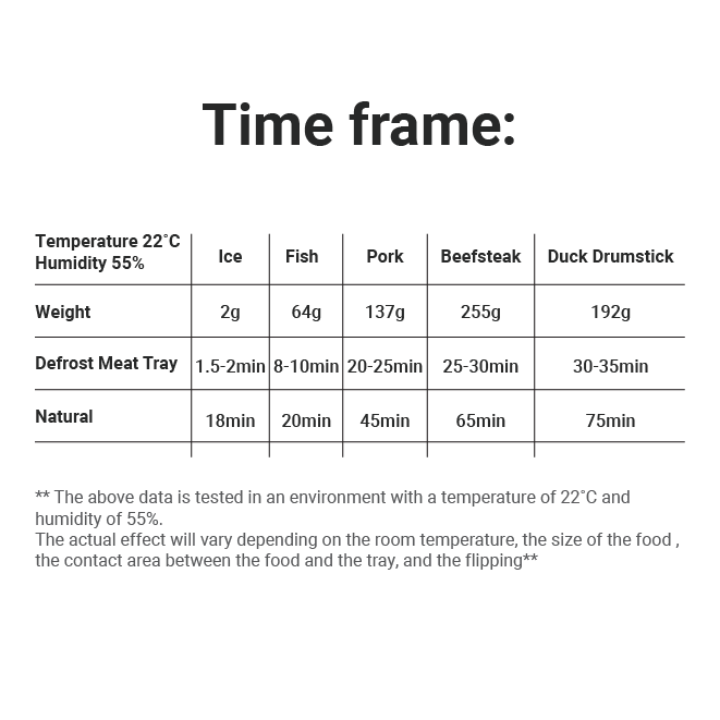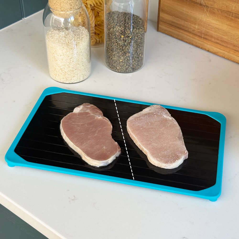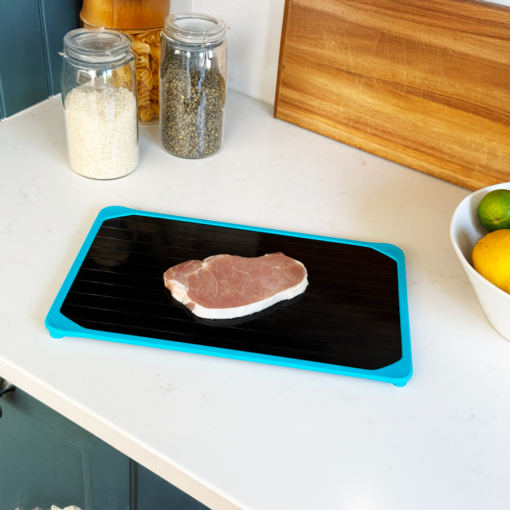 Defrosting your frozen meats and fish has never been easier or quicker. The Defrosting Meat Tray is designed to thaw your food up to five times faster than leaving it at room temperature, all while preserving the natural flavours and textures. Simply place your frozen food on the tray, and let it work its magic—no electricity or batteries required.