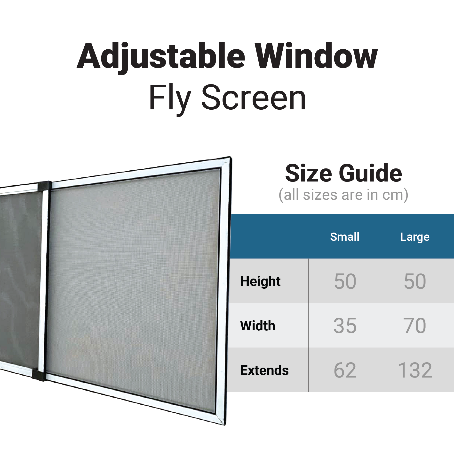 Offered in two sizes, the fly screen provides flexibility for various window dimensions. The smaller screen, measuring 50cm in height and 35cm in width, can extend up to 62cm in width. The larger variant, on the other hand, starts at 70cm in width and boasts an impressive extendibility up to 132cm, all while maintaining its 50cm height.